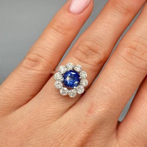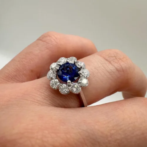 14k White Gold Sapphire & Diamond Ring – 1.56ct Sapphire, 1.10ct Diamonds. SDR075 GNJJ
