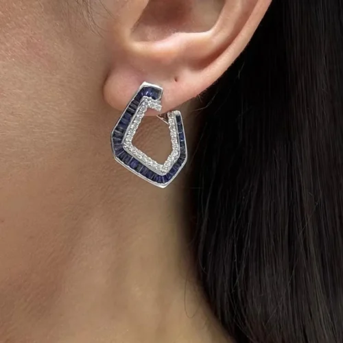 14kT White Gold Earrings with 0.90ct Diamonds and 3.50ct Sapphires. IZNJ