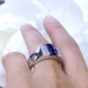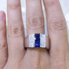 This gorgeous ring features 1.35 ct of compressed sapphires and 0.3 ct of natural diamonds, set in 18K white gold setting.