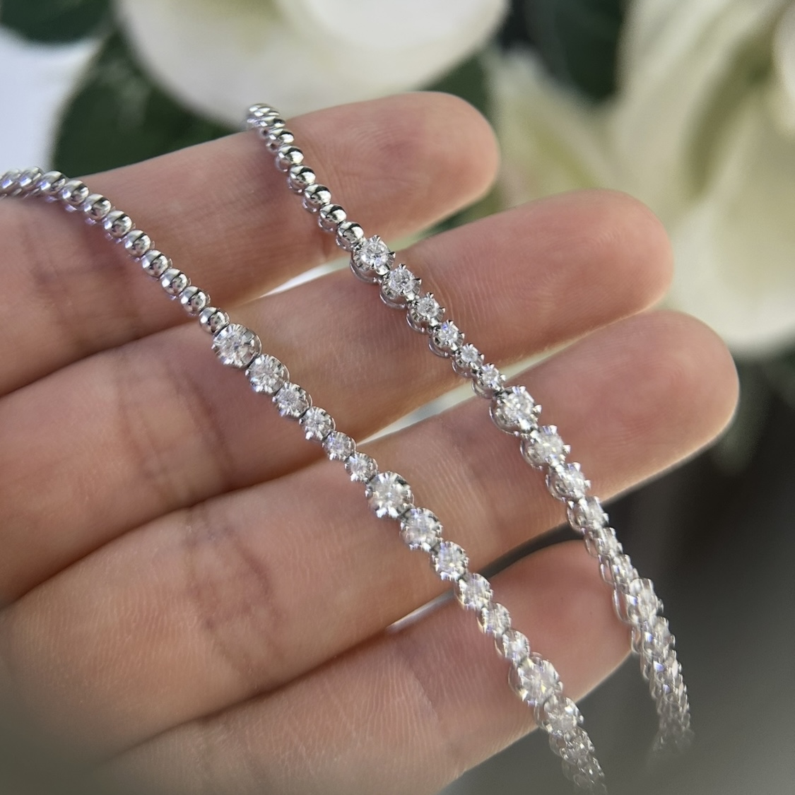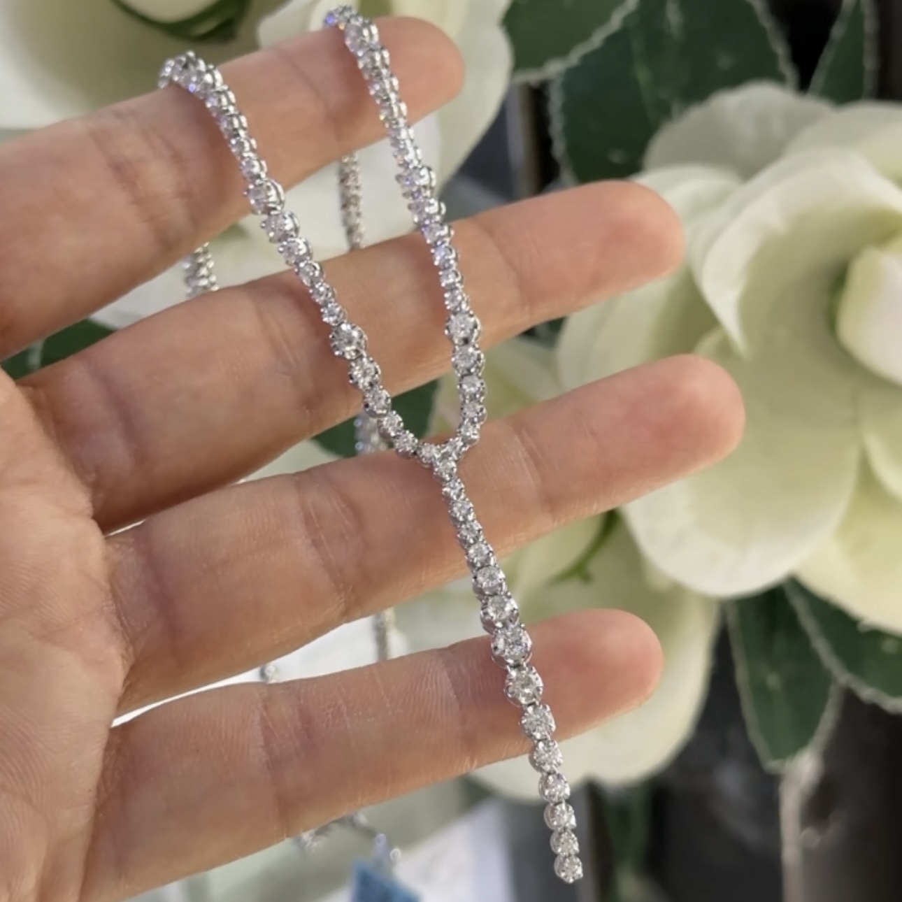 Elegant and timeless, this 18K white gold diamond necklace features 3.83 carats of natural diamonds in G-H color, VS2 clarity. Perfect for weddings, anniversaries, or luxury gifting.